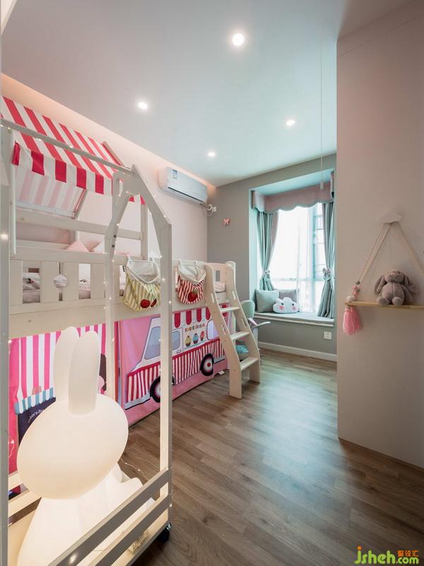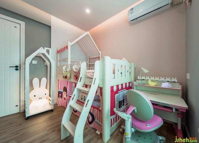 兒童房以粉色和灰色為主色調(diào),創(chuàng)造出一個(gè)夢(mèng)幻、愉悅的空間。