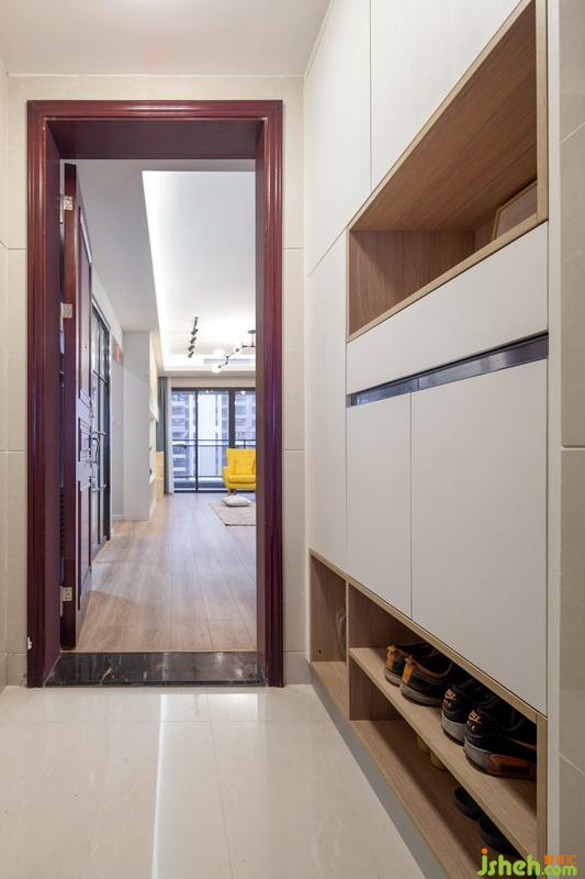 脫去一身疲憊,從忙碌的工作空間轉變回到舒適的私人空間,僅一扇門的距離,純色的亞光烤漆木鞋柜號召回家的呼應,一張一弛,滿滿幸福感......