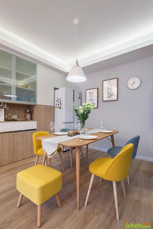 原木餐桌上擺放一束綠意,嬉戲于方寸之間,簡單而清新,那一抹黃色的餐椅,讓身處其間的可愛人兒感受熱情與溫暖,這才是生活應有的樣子。