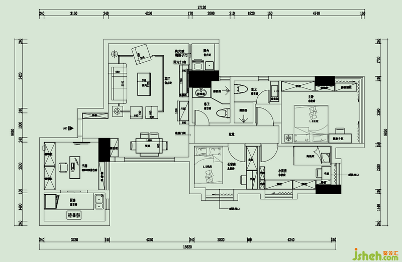 為了規(guī)避開門直沖臥室門口的問題,我們將臥室的房門調(diào)整到原來衛(wèi)生間的方向,既解決了業(yè)主在意的風水問題,又讓衛(wèi)生間和臥室的空間配比更舒適。