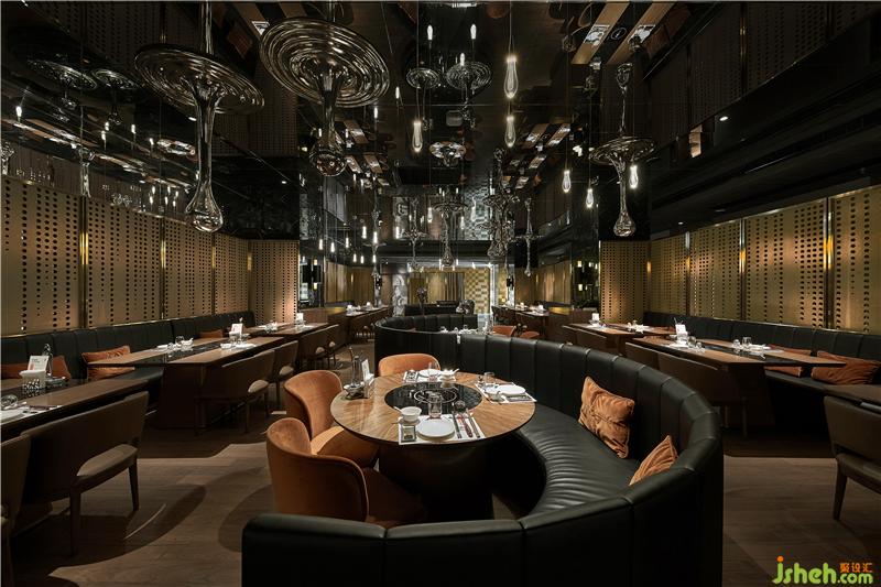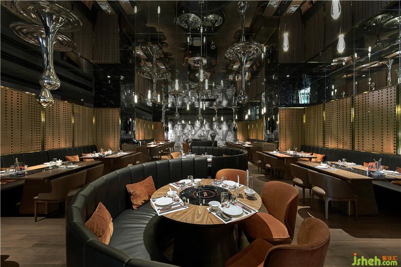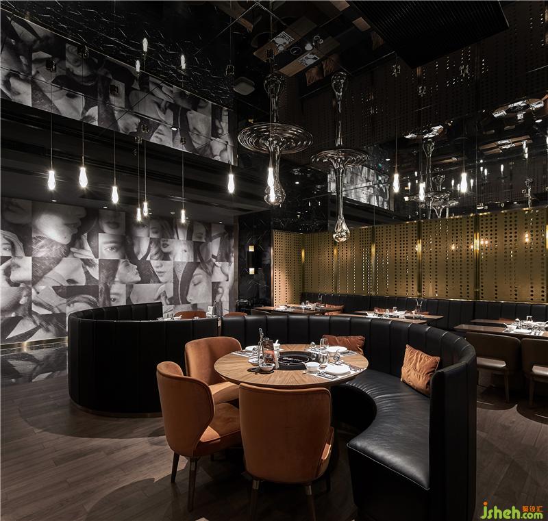 人們提到重慶美食,往往會(huì)想到川香麻辣的火鍋。而本案定位旨在打造重慶最好的澳門海鮮火鍋餐廳,在當(dāng)下消費(fèi)升級(jí)的大趨勢(shì)中,面向高端消費(fèi)人群,將重慶本地“美女、美食、美景”三美文化融入其中。 以設(shè)計(jì)細(xì)節(jié)的品質(zhì)感,烘托餐廳的小資情節(jié)。雅致的配色與時(shí)尚現(xiàn)代的設(shè)計(jì)語(yǔ)匯為高端餐廳注入全新的活力。金屬與木材,黃色與藍(lán)色,在本案中設(shè)計(jì)師有意將這些材料與色彩語(yǔ)匯進(jìn)行碰撞,用大面積的不同深淺的灰色做過(guò)渡,為整個(gè)設(shè)計(jì)平添了更多地可能性。設(shè)計(jì)師精心籌備,利用最新的3D打印技術(shù),將經(jīng)過(guò)藝術(shù)化處理的美女人像,獨(dú)家定制成為金屬不銹鋼特色燈飾,成為餐廳的一大設(shè)計(jì)亮點(diǎn)。人們?cè)诓蛷d不斷的移動(dòng)中,3D畫(huà)會(huì)形成不同的成像效果,現(xiàn)場(chǎng)體驗(yàn)效果令人驚艷。周圍有美景、身旁有美女、口中有美食。瀟灑重慶人的快意人生,不過(guò)如此。餐廳設(shè)計(jì)