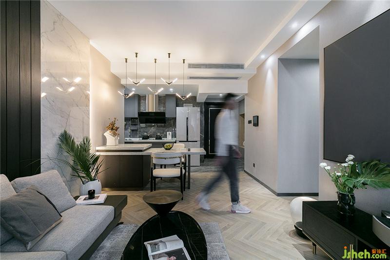 中島分擔(dān)了餐邊柜的角色,使過(guò)道的動(dòng)線更加的流暢。裝修公司
