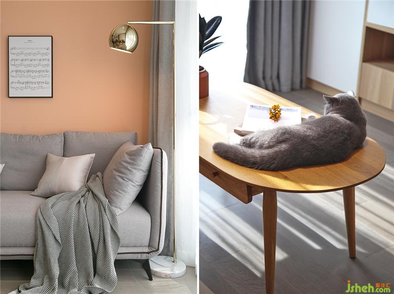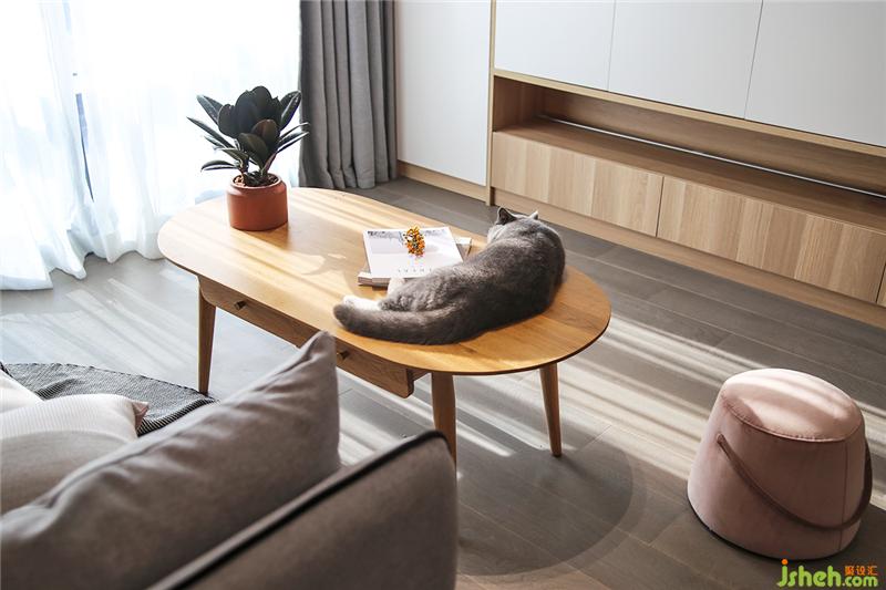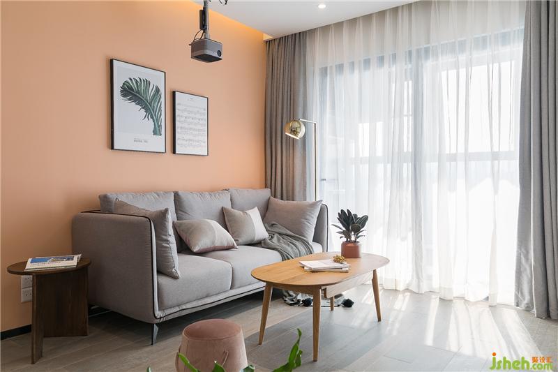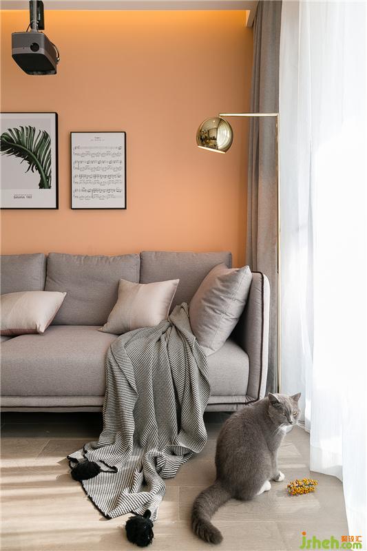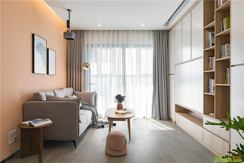 客廳為無(wú)主燈設(shè)計(jì),投影儀代替了不常使用的電視機(jī),整面的收納柜可以覆蓋家庭的日常收納。沙發(fā)背景墻的珊瑚粉色帶著滿滿的活力氣息,不粘膩,不惹眼,卻能通過(guò)色彩和材質(zhì)的搭配打造獨(dú)一無(wú)二的感覺(jué)。裝修設(shè)計(jì)