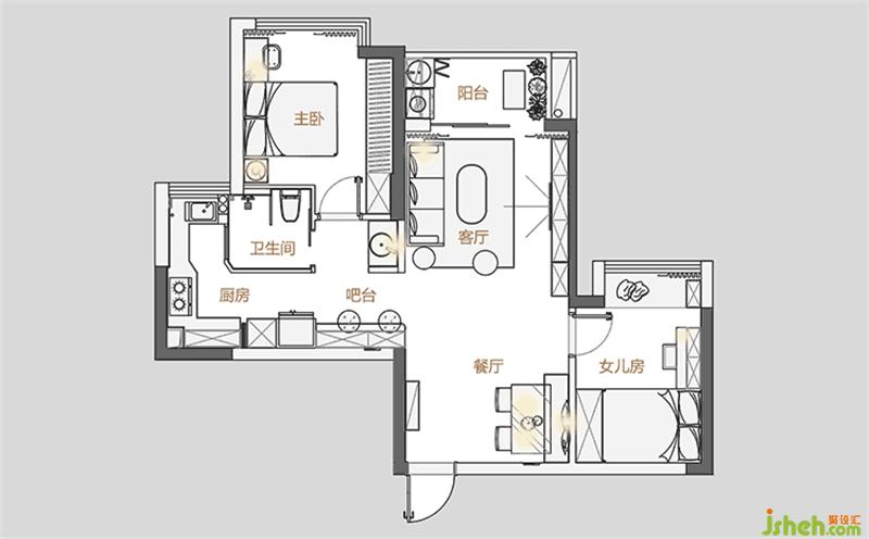 ▲廚房呢一定要大,這可是爽姐的戰(zhàn)場(chǎng),我們把衛(wèi)生間的洗手臺(tái)獨(dú)立出來(lái),廚房的空間延續(xù)到原本比較雞肋的生活陽(yáng)臺(tái),這樣廚房就比原來(lái)大了一倍的面積,走道的位置又可以設(shè)計(jì)一組吧臺(tái),主臥的衣柜也可以變成現(xiàn)在的3.2米,榨干最后1㎡并使動(dòng)線更加流暢。裝修設(shè)計(jì)