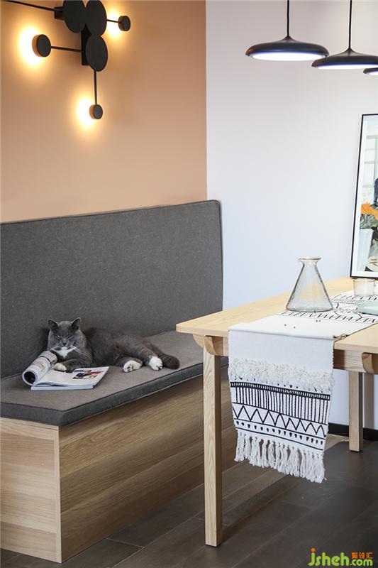 卡座簡直是小戶型的福星,就像去餐廳吃飯你是不是最喜歡選靠墻又臨窗的位置?寬敞又安心,還能增大收納。