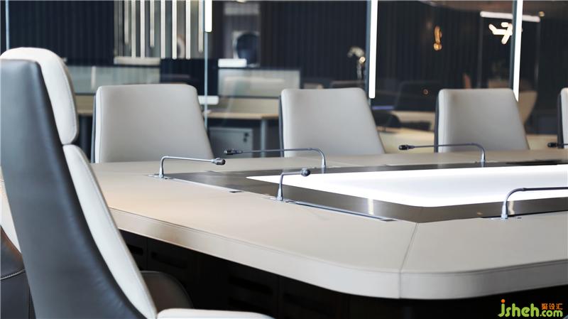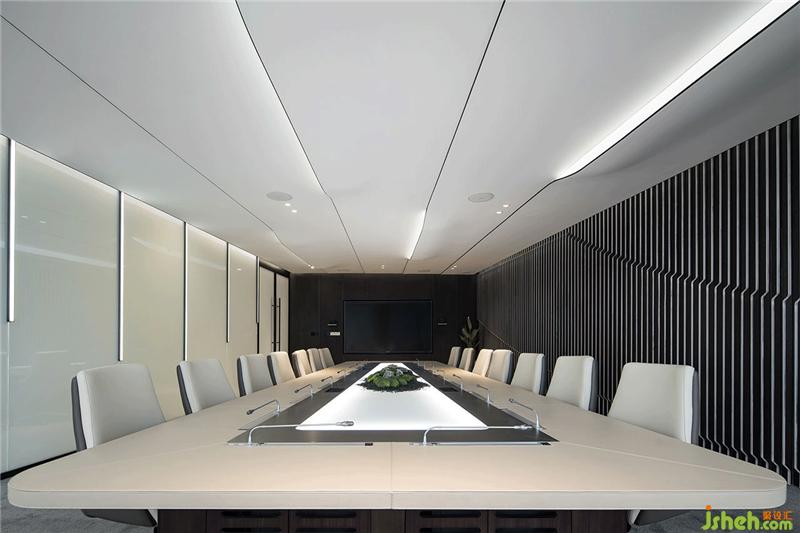 可容納16個人的會議室,背景以水波紋為元素,與天花板的曲線交相呼應(yīng),傳達了思想交流和碰撞的過程。環(huán)保高效的無紙化辦公系統(tǒng)體現(xiàn)出深圳的特質(zhì)--效率、務(wù)實、國際化。會議室和獨立辦公室的隔斷使用霧化玻璃,兩者的獨立和開放可以自由切換。