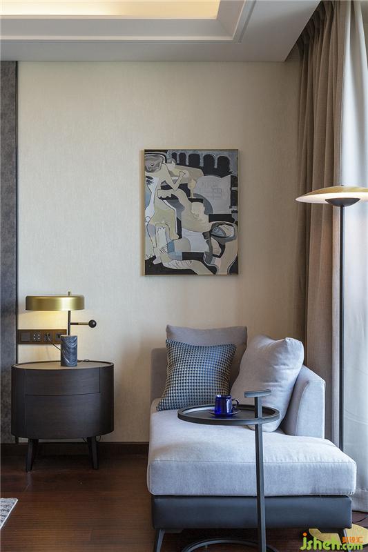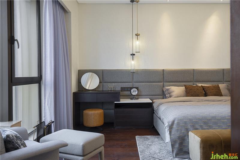 主臥以灰色為主加上姜黃色點(diǎn)亮空間,除基本設(shè)施外,添加休閑沙發(fā)的組合。一本書(shū),一杯咖啡,一片海,一輪落日,滿足你所有的文藝情懷