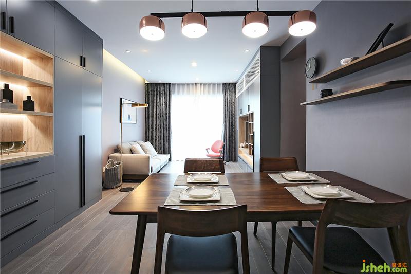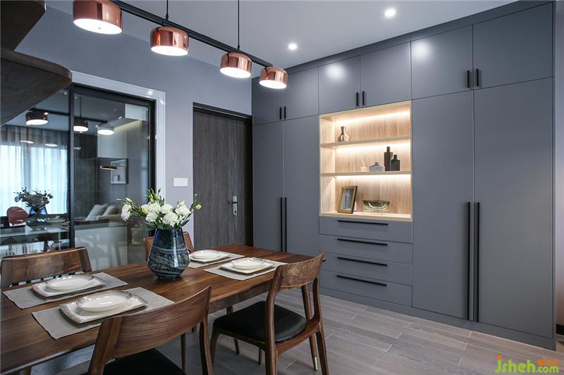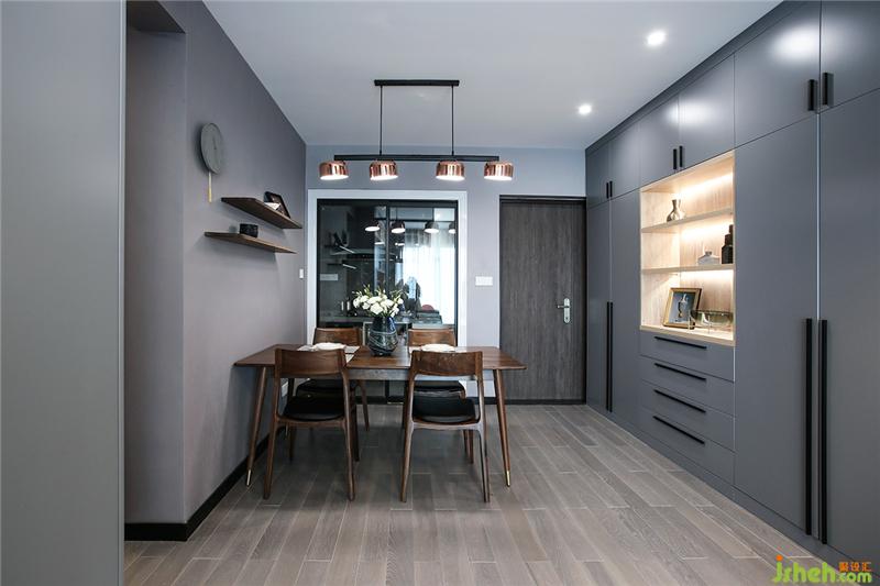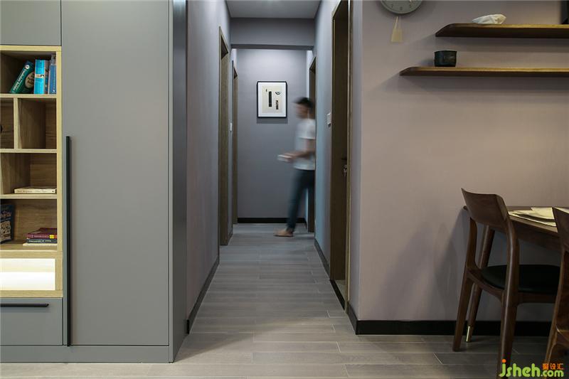 玄關(guān)&鞋柜頂天立地的組合簡直是收納神器,而且空間利落顯得高大。廚房的門與餐廳連接的墻打通,做成玻璃推拉門。