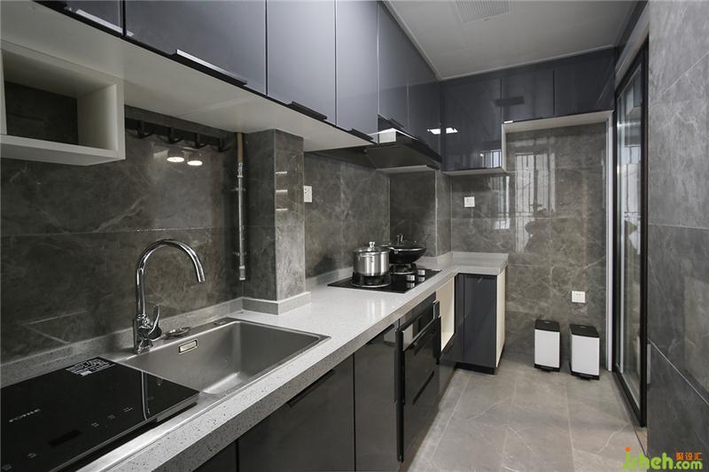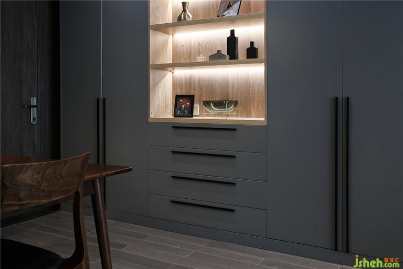 一灰到底,櫥柜使用耐污的納米門板,廚房雖小五臟俱全,因此是設(shè)計(jì)的重點(diǎn),屋主不喜歡瓶瓶罐罐或各式料理工具是擺在臺面或掛,海邊的風(fēng)塵很大,掛在外面增加收拾工作量。提前挑好消毒柜、烤爐、洗碗機(jī)、油煙機(jī)保證這些大家伙融入家里時(shí),可以尺寸貼合整潔不會突兀。