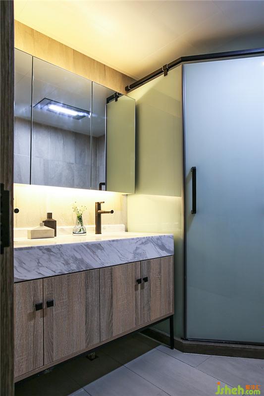 最大限度的利用好洗臉臺和鏡柜,各種護(hù)膚品、漱口水、牙線往里一放很方便。