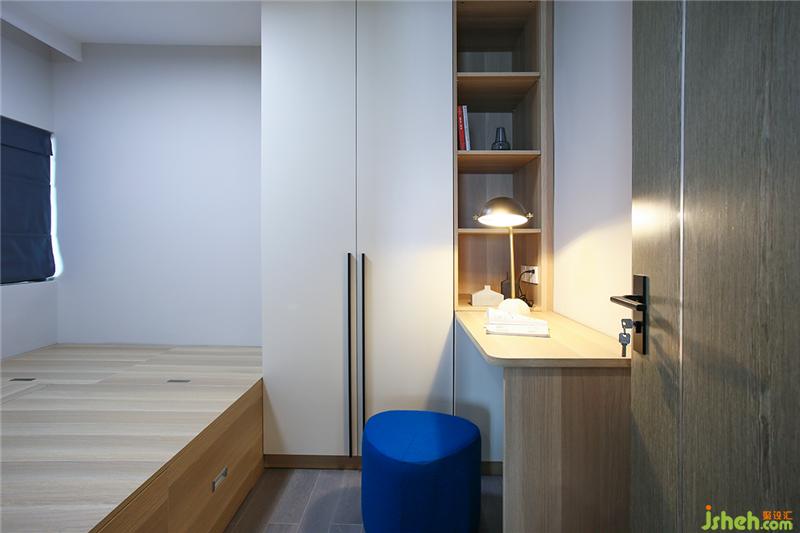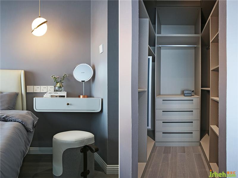 很遺憾的地方原始結(jié)構(gòu)的梁比較低,沒有那么開敞,即使這樣還是放置了一個小梳妝臺和衣帽間。