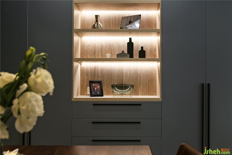 主臥的衣柜多掛式的,女主喜歡將衣服掛起來。一些未使用到的化妝品抽屜可以放置,耳環(huán)項鏈等也放抽屜里不至于被孩子隨時拿出來玩。隱藏的保險柜可以放重要的證件。還設(shè)計了每日用的包包的地方。