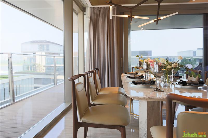 餐桌是天然大理石透著水墨紋理,