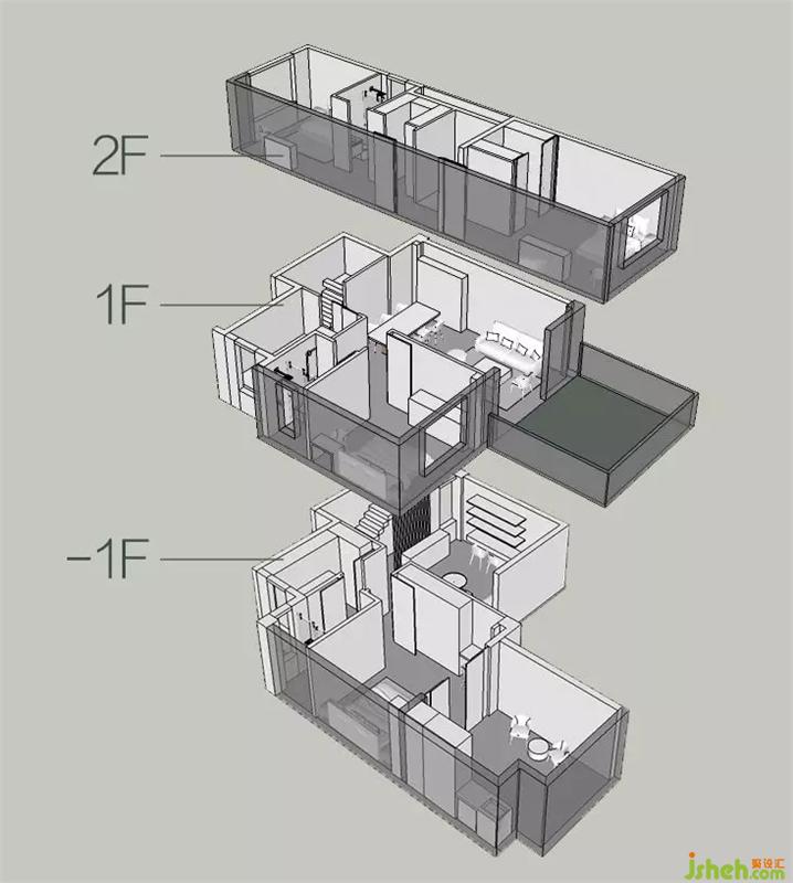 推門而入經(jīng)過兩邊的小魚塘、花叢、菜園,來到室內(nèi)一樓主要由客餐廳、廚房和父母房構(gòu)成,二樓是主臥和未來的baby房,沿著樓梯走到負(fù)一樓就來到可以容納很多人party的多功能影音室,天井的位置承載了洗曬休閑的功能。室內(nèi)設(shè)計(jì)師