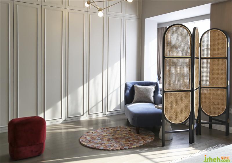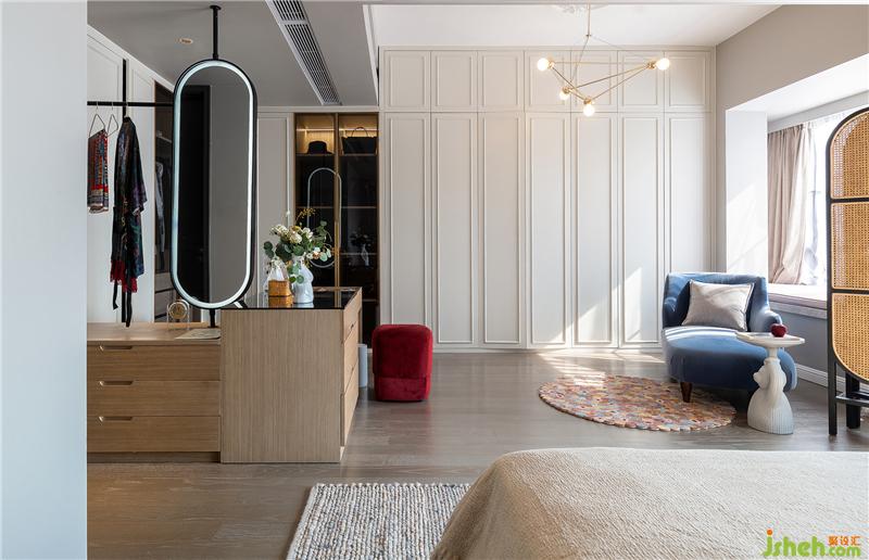 次凈衣→鏡子→梳妝臺→衣柜,達成屋主舒適方便的生活秩序。室內(nèi)設計師