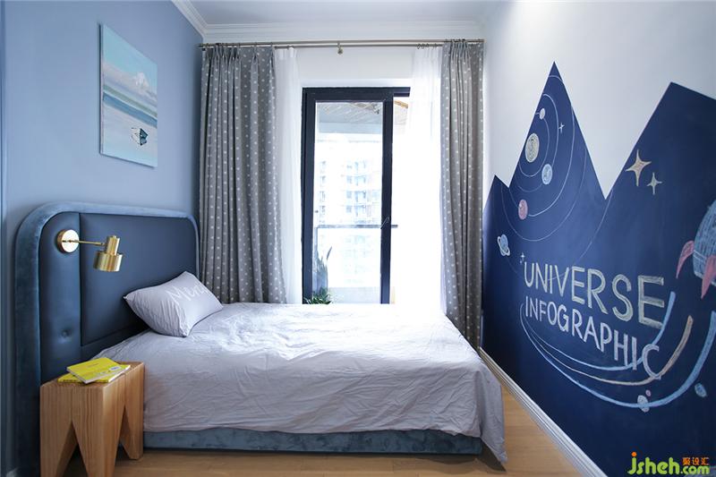 哥哥的想法天馬行空,喜歡超級英雄樂于表達(dá)自己的想法,所以空間充滿奇幻星空元素,空間充滿趣味和英雄情結(jié)。