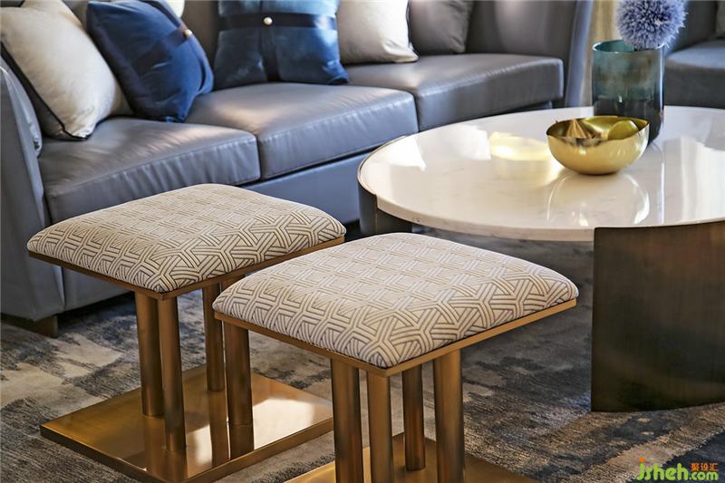 圓桌和異形邊幾營造輕奢藝術(shù)氛圍