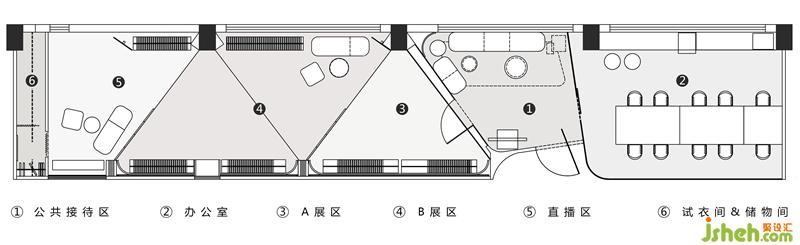 一眼就望的到頭平面結(jié)構(gòu),服裝店設(shè)計(jì)多種功能怎么能既獨(dú)立又融合?使用“之”字形的動(dòng)線導(dǎo)向并通過(guò)局部遮擋,給人一步一景的空間體驗(yàn)