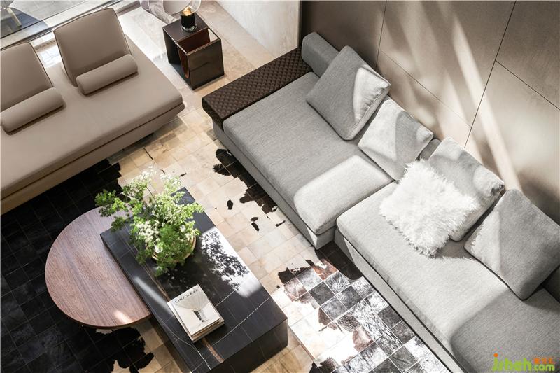 客廳是家庭活動的重心,沙發(fā)呈U型擺放,茶幾方圓相嵌虛實結(jié)合,家族聚會、呼朋喚友都有坦然舒適的場所。