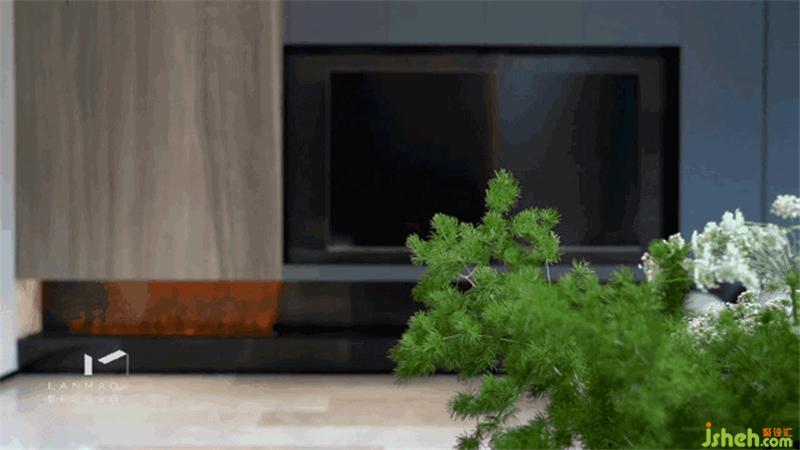 5.4米的沙發(fā)背景墻是本案設(shè)計的難點,層高很高面積也比較大,在空間中屬于焦點所在,考慮到預算和效果,我們前后出了幾版方案,東莞別墅裝飾最終選擇了美巖板+大理石的材質(zhì),做了一個疊級和燈光效果,通過肌理的對比和分割的疏密,簡約并不簡單貫穿一二層空間。