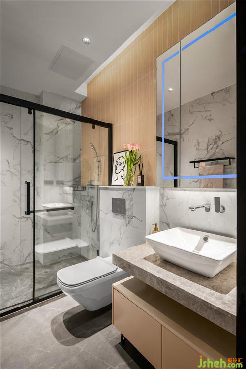 女兒房還配套了一個專屬衛(wèi)生間,小面積的粉色呼應(yīng)臥室的整體色調(diào)。