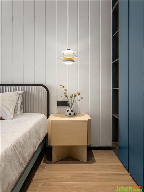 來到二層是大兒子和小兒子的房間,分別位于樓梯的左右兩側(cè),大兒子的房間靠窗邊的位置安排了架子鼓的位置,對面設(shè)計了一面靈感墻,東莞別墅裝飾樂譜和演出的照片可以在此記錄。