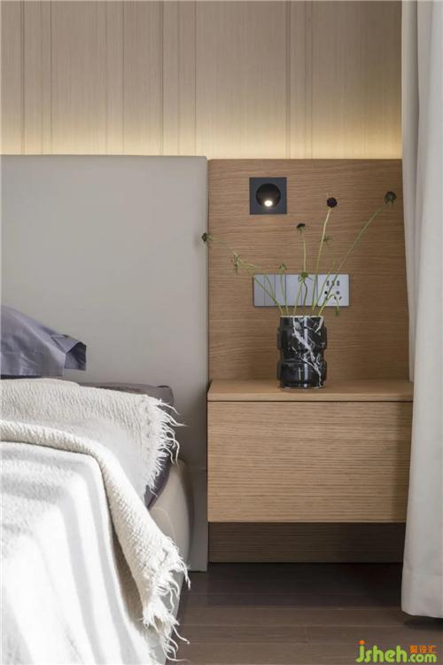 臥室的床和床頭柜做成了一個(gè)整體,這樣的活動(dòng)家具在市場(chǎng)上很難買到,所以選擇了定制,這樣就可以根據(jù)喜歡的尺寸和材質(zhì)搭配,空間沒有過多的裝飾,通過燈光營(yíng)造氛圍和層次。