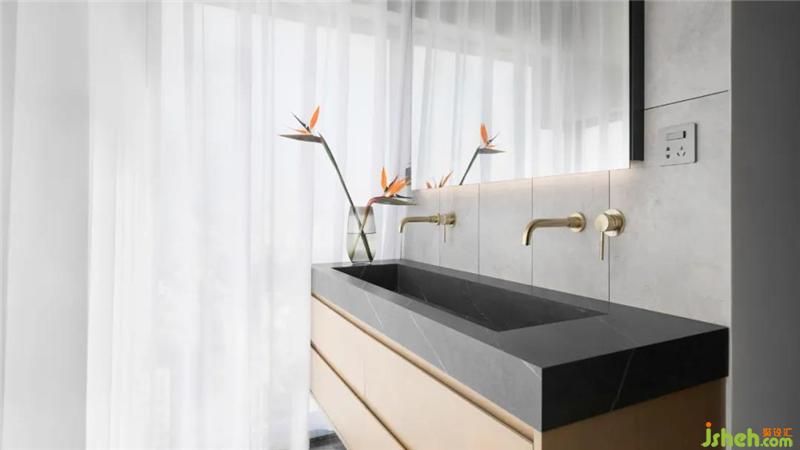 主臥房門門套及墻面為現(xiàn)場(chǎng)制作,門扇外訂,門邊一公分寬的木飾面也是木工師傅一點(diǎn)點(diǎn)貼上去的。盡量讓空間材質(zhì)形成一體,連而不黏,在制作時(shí)強(qiáng)調(diào)紋理的連續(xù)性。在去“門把手”這個(gè)事情上驚喜地和業(yè)主達(dá)成一致,采用了地彈簧的形式解決開關(guān)門的問題。