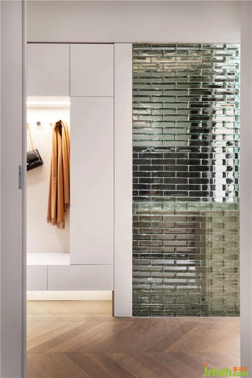1.將原來采光不好的廚房,一半的墻體用玻璃磚處理,增加采光和趣味;