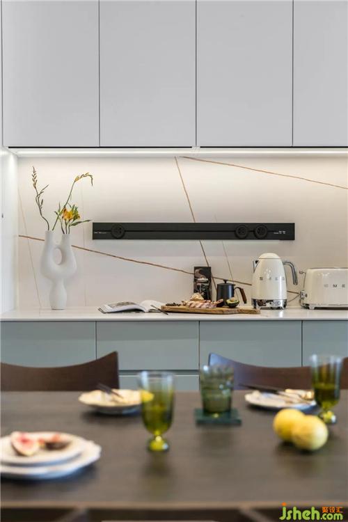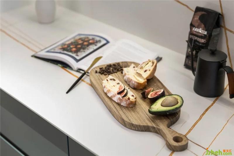 喜歡買買買的女主,小家電特別多,軌道插座可以靈活用電,西櫥柜可以方便拿取和操作,研究美食、咖啡讓生活充滿樂趣。