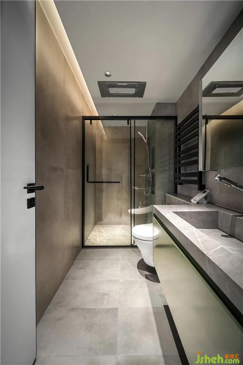 主臥主衛(wèi)的墻面轉(zhuǎn)角設(shè)計(jì)成了圓弧形減弱邊界,舒緩?fù)ǖ赖霓D(zhuǎn)折。
