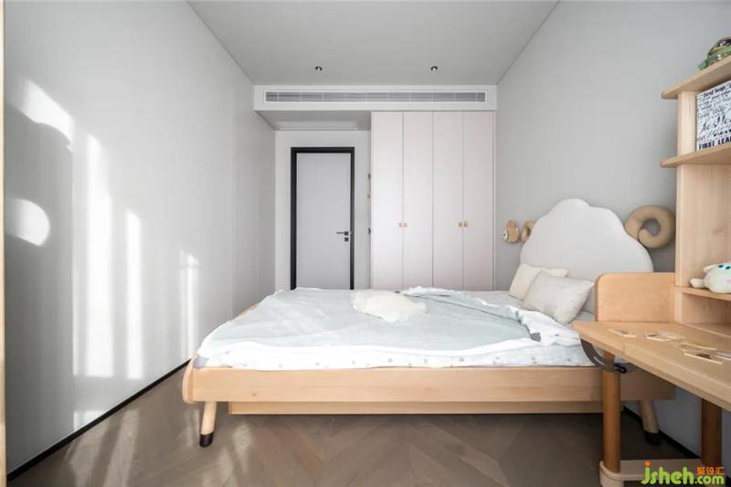 拆除房間與陽(yáng)臺(tái)的隔墻,重新封窗,將原來(lái)狹長(zhǎng)的無(wú)用的陽(yáng)臺(tái)空間納入女孩房,深圳室內(nèi)設(shè)計(jì)師并將靠近女孩房的過(guò)道位置,增加一面儲(chǔ)物柜。