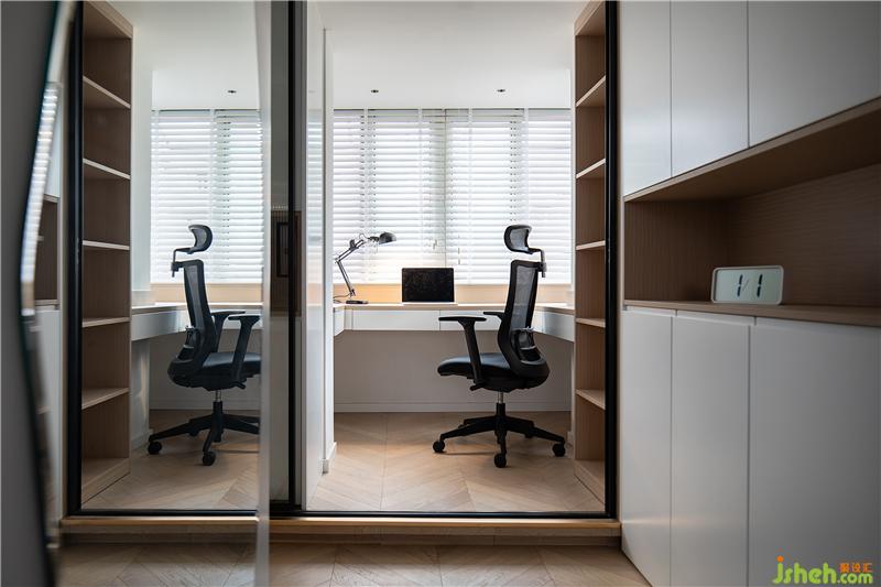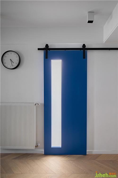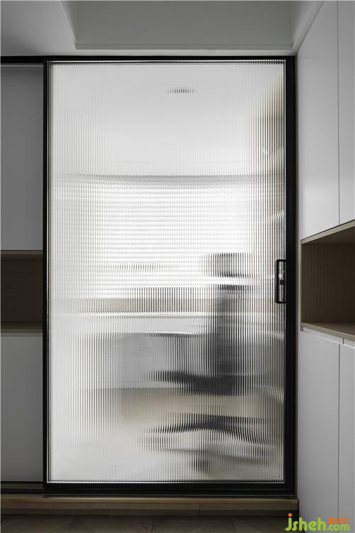 ▲磨砂玻璃門,在保證私密性的同時(shí),又增加了室內(nèi)起居空間的采光性。