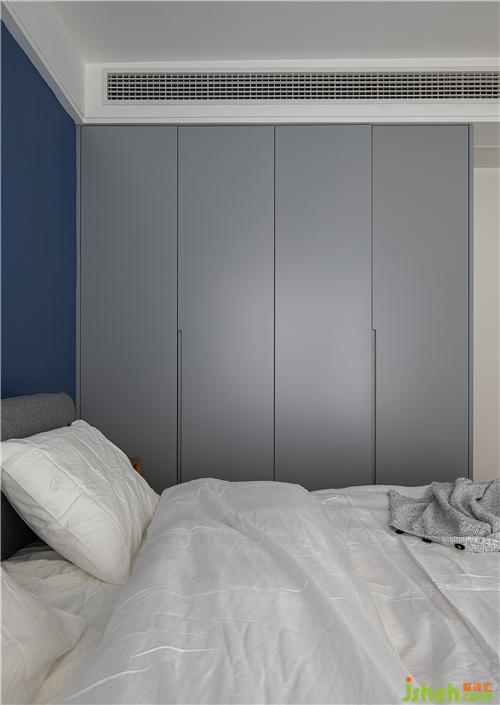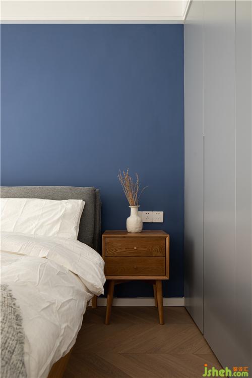 臥室中的色調(diào)與公共空間相呼應(yīng),采用了藍(lán)與白。南京裝修設(shè)計(jì)灰藍(lán)色調(diào)讓嘈雜的生活瞬間安靜下來(lái),帶人走入放松舒適的休憩氛圍。