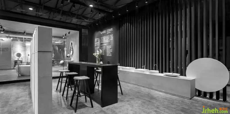 GABO衛(wèi)浴本次展會的展廳設計延續(xù)了自己多年來以黑白灰為主色調的品牌風格,展廳設計以更講求空間感+功能性,外部主色調以黑色為主,內部大量運用水泥飾面,營造一種個性且獨有的品牌氣質,再配合GABO所研發(fā)的各系列高設計感的衛(wèi)浴產品展廳,設計以最極簡的方式將產品進行完美展示。
