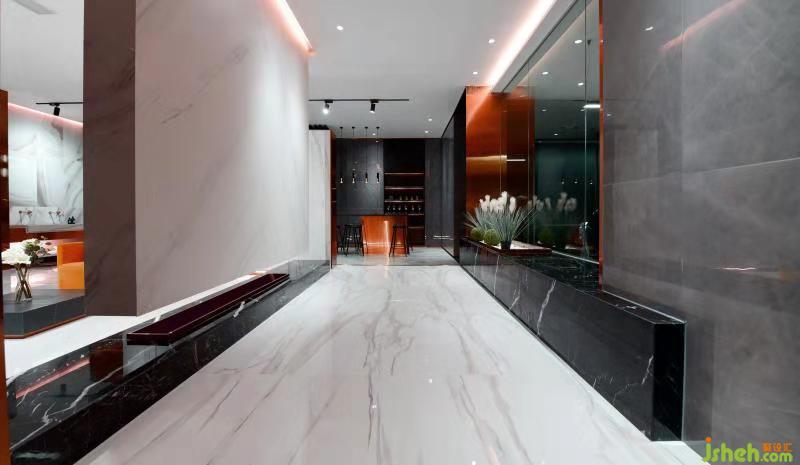 選材區(qū)作為展廳的靈魂區(qū)域,匯集了企業(yè)最豐富最核心的素材。不管終端市場(chǎng)如何改變,此處都是作為一個(gè)“永恒之城”而存在,可以說是展廳的核心大腦。設(shè)計(jì)手法上我們采用了可裝置組裝的手法,利用瓷磚與木飾面的巧妙結(jié)合,打造一個(gè)休閑的座談區(qū)域,不但將瓷磚的特性展示出來,還把空間充分利用起來,讓客戶在暢談的同時(shí)也能隨時(shí)觸摸感受到這家公司瓷磚的質(zhì)量之美。室內(nèi)設(shè)計(jì)師