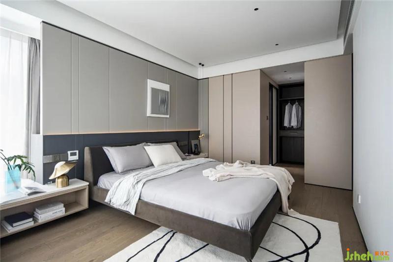主臥設(shè)置了雙衣帽間,通向主衛(wèi)外側(cè)設(shè)置了一個稍小型衣帽間,是男屋主專用,女屋主的衣帽間在床尾,儲存量更大,看著美美的衣服整整齊齊的擺放在一起,心情都會更加美麗~