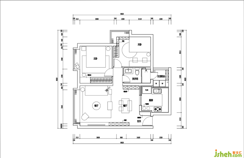 3、原客餐廳比例比較狹長,過于浪費空間,與廚房尺寸調節(jié)后比例更加和諧