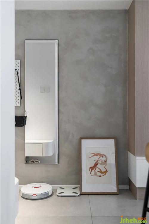 玄關全身鏡與洞洞板的結合,讓包包、鑰匙及帽子等物品有了專門放置的區(qū)域。出門或回家隨手拿取十分便利。