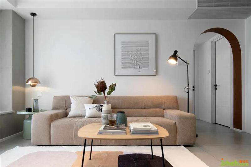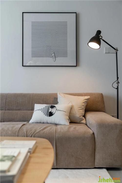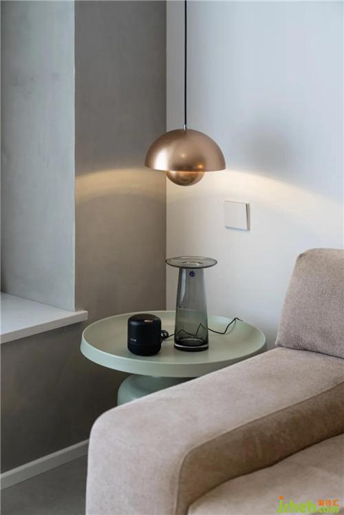 淺駝色的三人位沙發(fā),憨態(tài)可愛,與淺青色的邊幾搭配相得益彰,低飽和的色彩總是耐看些,也不會產(chǎn)生突兀感深圳裝修設(shè)計。兩側(cè)使用吊燈+落地燈,不對稱的形式讓生活平添一份趣味。發(fā)現(xiàn)了嗎?藝術(shù)漆將電視區(qū)與沙發(fā)區(qū)連接到了一起哦~