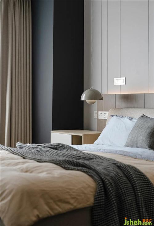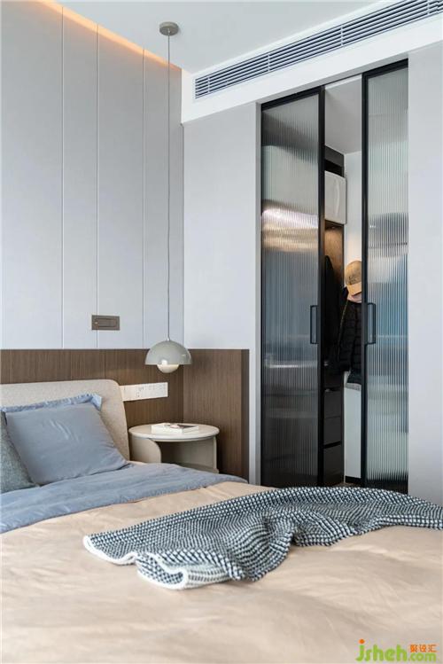 床旁邊的衣帽間是兩組頂天立地的衣柜,收納量很大。