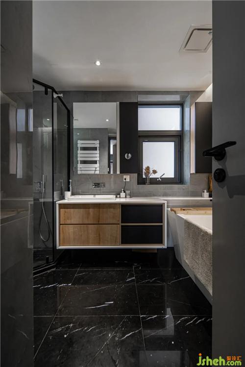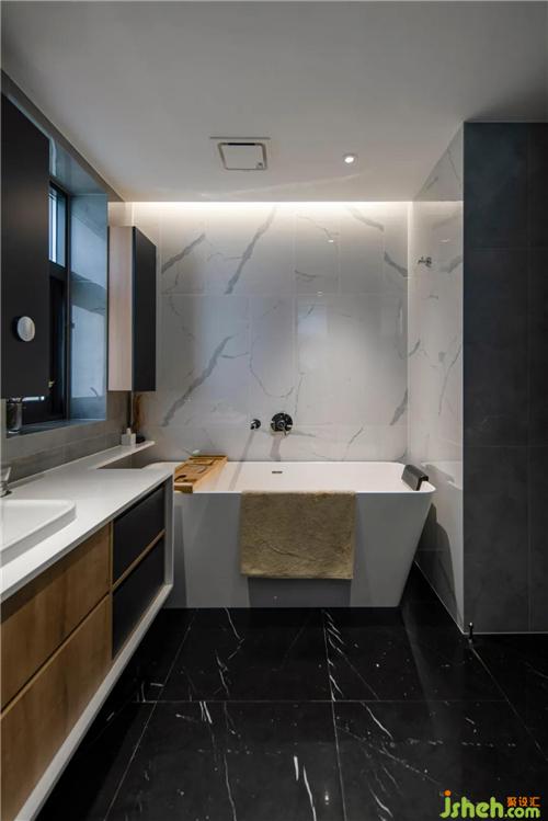 擴(kuò)大后的主衛(wèi)十分寬敞,雖然在南方,浴缸的使用頻率還不低。鏡柜和吊柜收納量并不小,但鏡子和懸吊的設(shè)計(jì)使得看上去十分輕盈。所有籠頭都選用了入墻式的暗裝,讓墻面盡可以簡(jiǎn)潔。