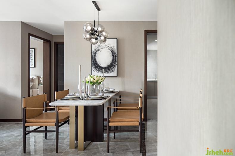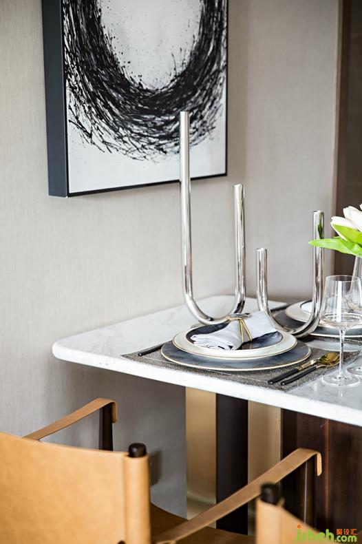 空間中飾以后現(xiàn)代抽象藝術(shù)裝飾畫,與幾何形制家具、別致燈具相互呼應(yīng),以生活的藝術(shù)態(tài)度,脫離藩籬,營造出別具一格的空間氣質(zhì),個(gè)性、雅致、內(nèi)在文化濃郁。