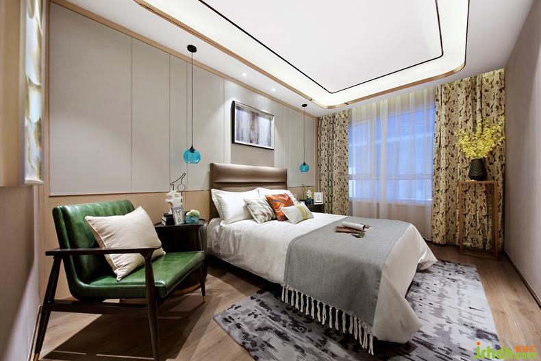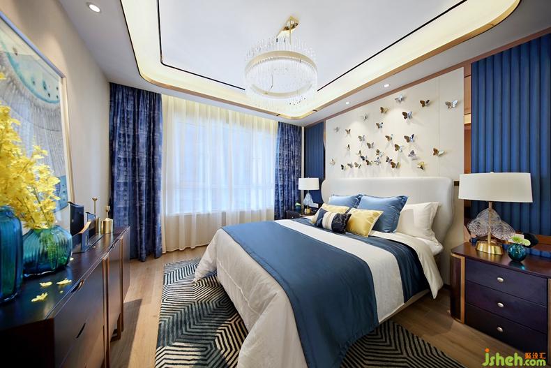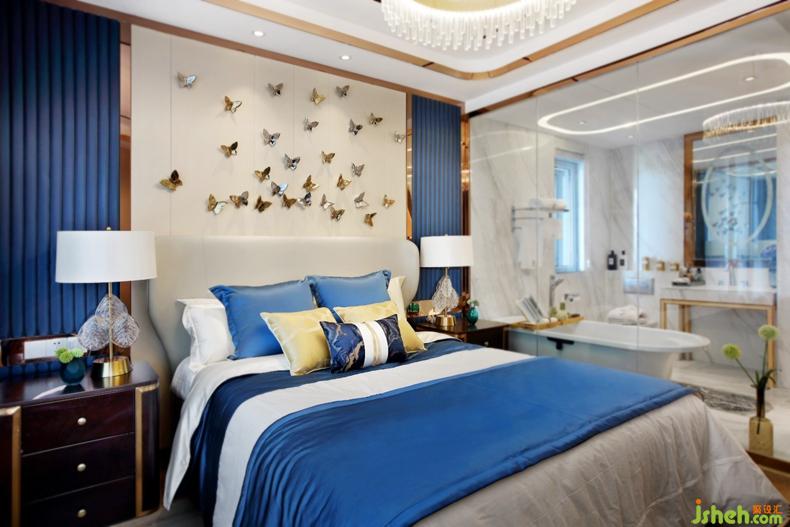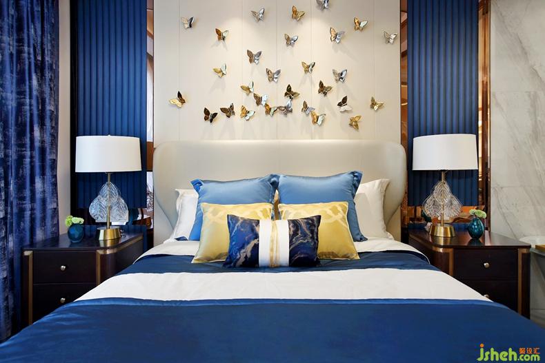 臥室床頭翩翩欲飛的蝴蝶,搭配藍(lán)白色調(diào)床品,讓人與大自然更加親近。
