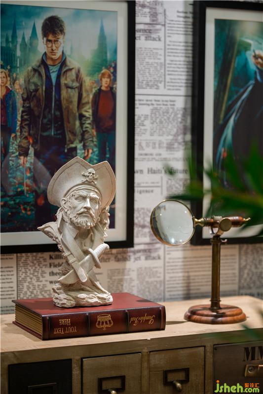 墻面鋪滿復(fù)古式報紙樣式的墻紙,讓人不由聯(lián)想到《哈利波特》中的預(yù)言家日報,各類英式精致飾物為空間更添英倫氣息。深圳裝修公司