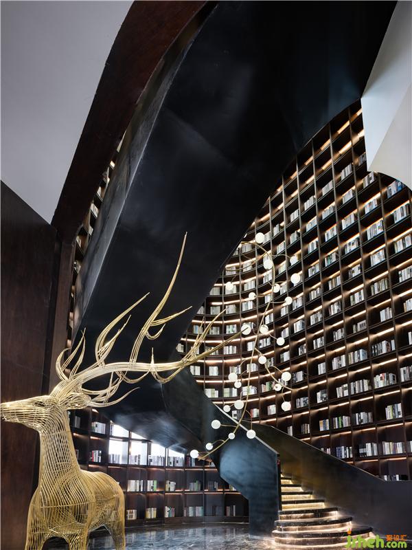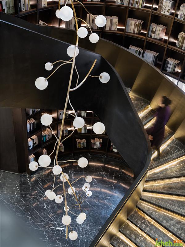 大尺度的樓梯旋轉(zhuǎn)而上,高層書架將階梯緊緊包裹,讓空間像藝術(shù)博物館一樣綻放,一座博物館,一部世界史,用默默無聲的方式,再次強(qiáng)調(diào)人類文明的溫度與當(dāng)代藝術(shù)宣揚(yáng)的自由。