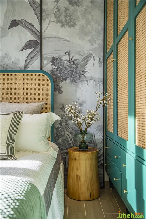 馬卡龍色的柜體與床沿相呼應,帶來一種煥然一新的感覺,素雅的床上用品又與馬卡龍色互補和諧舒適。斜陽透過溫柔的紗簾沉浸在寧靜的房間里,柔和清澈。仿佛把一個綠色的,安靜從容的,一塵不染的,非常東方的越南搬到了全南。加上色彩與材質(zhì)的糅合讓空間迸發(fā)出個性力量藝術與設計的存在傳遞屋主特有的氣質(zhì)別具一格浪漫不羈。樣板房設計