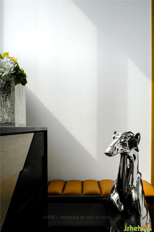 冷元寶先生使用愛馬仕橙色系加上高級灰鋪染出空間高端優(yōu)雅的精致之氣,黑白相間的大理石墻壁頗具流動感,藝術(shù)感十足的花瓶、生命力旺盛的綠植,點(diǎn)綴其間,層次分明,豪華的質(zhì)感和整個圓滑的輪廓,無不彰顯出主人高雅的品味。