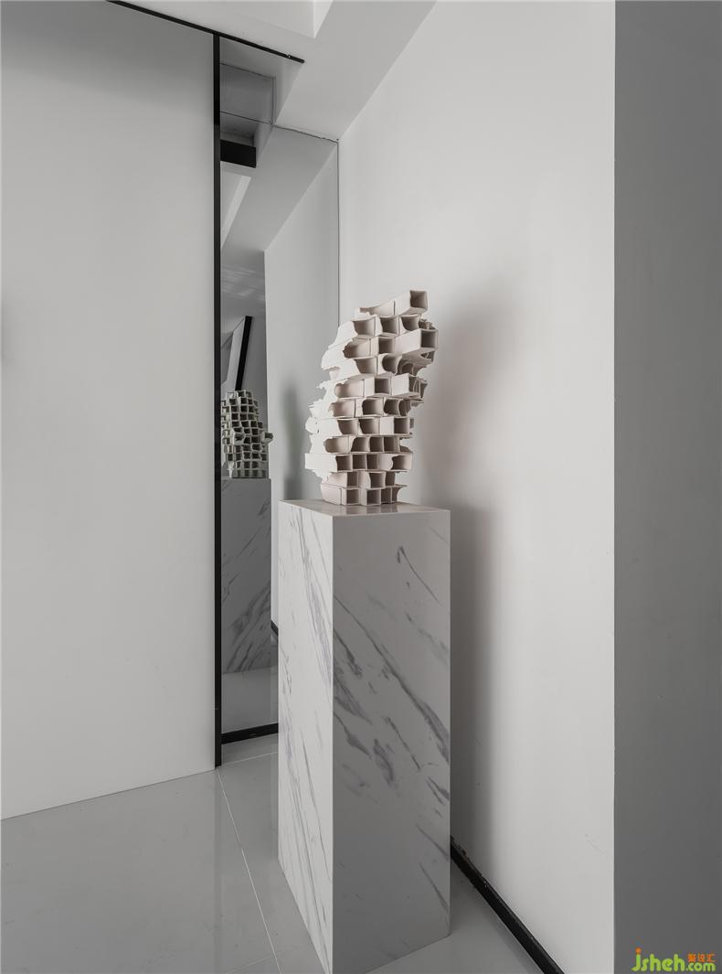 人,不也是這樣么?空間的營(yíng)造,恰似某種精心設(shè)計(jì)的情感連通器。樣板房設(shè)計(jì)引發(fā)了觀者最真實(shí)的潛意識(shí)認(rèn)同,感動(dòng)而喜悅,質(zhì)樸因此具有了治愈系的溫暖。唯有白色,才能為這一情感反應(yīng)提供最好的基底。