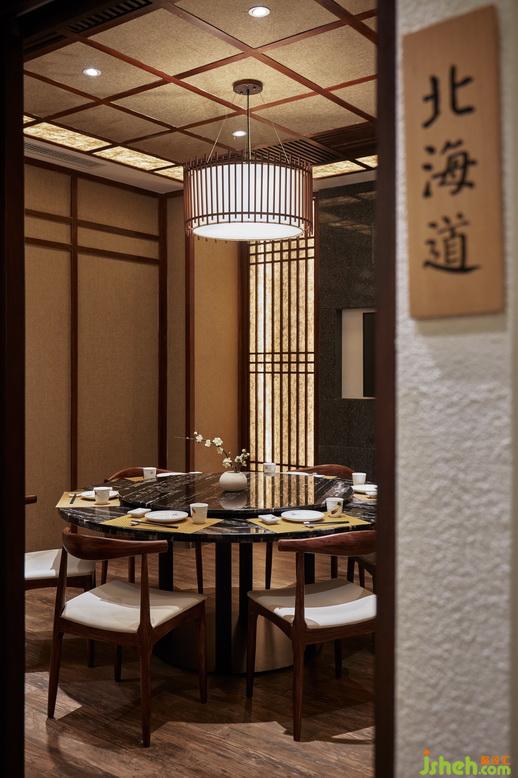 本案采用現(xiàn)代的設(shè)計(jì)手法與日式傳統(tǒng)元素相結(jié)合,在優(yōu)雅和情緒飽滿的氛圍中體現(xiàn)出本餐廳設(shè)計(jì)的主題效果。